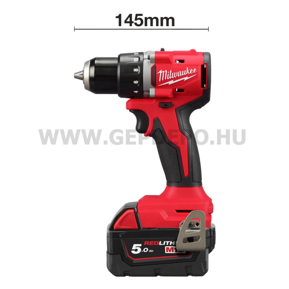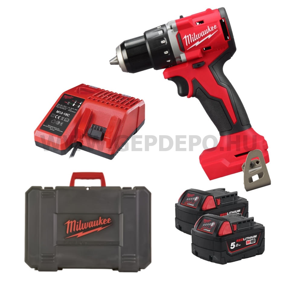 Milwaukee M18 BLDDRC-502C kompakt szénkefe nélküli fúrócsavarozó - 2 db akku, töltő, kofferben