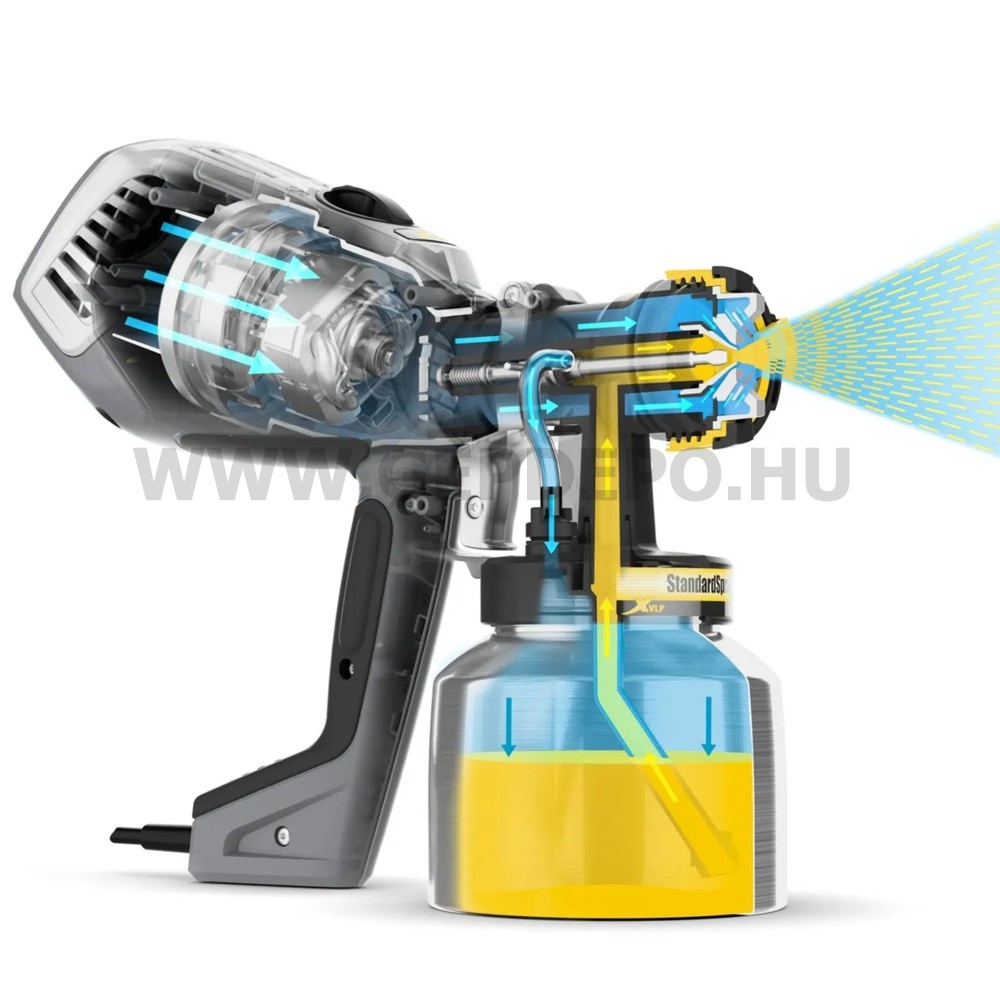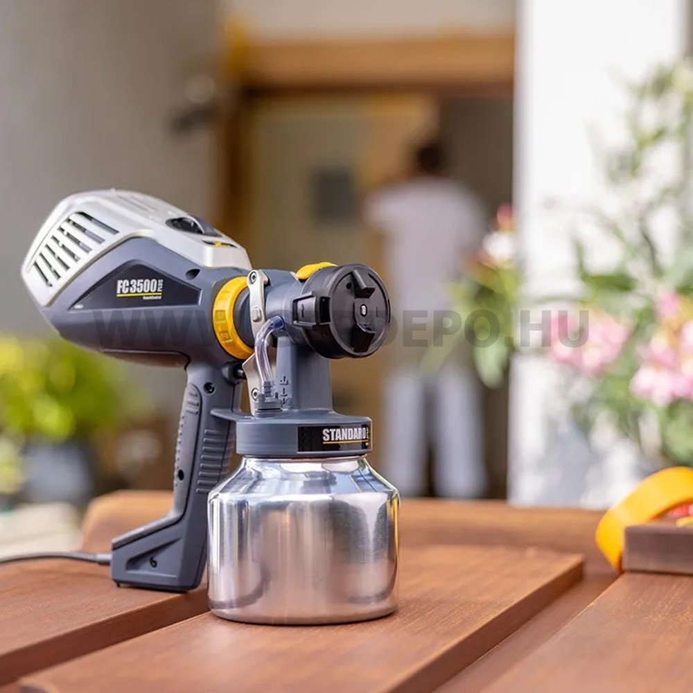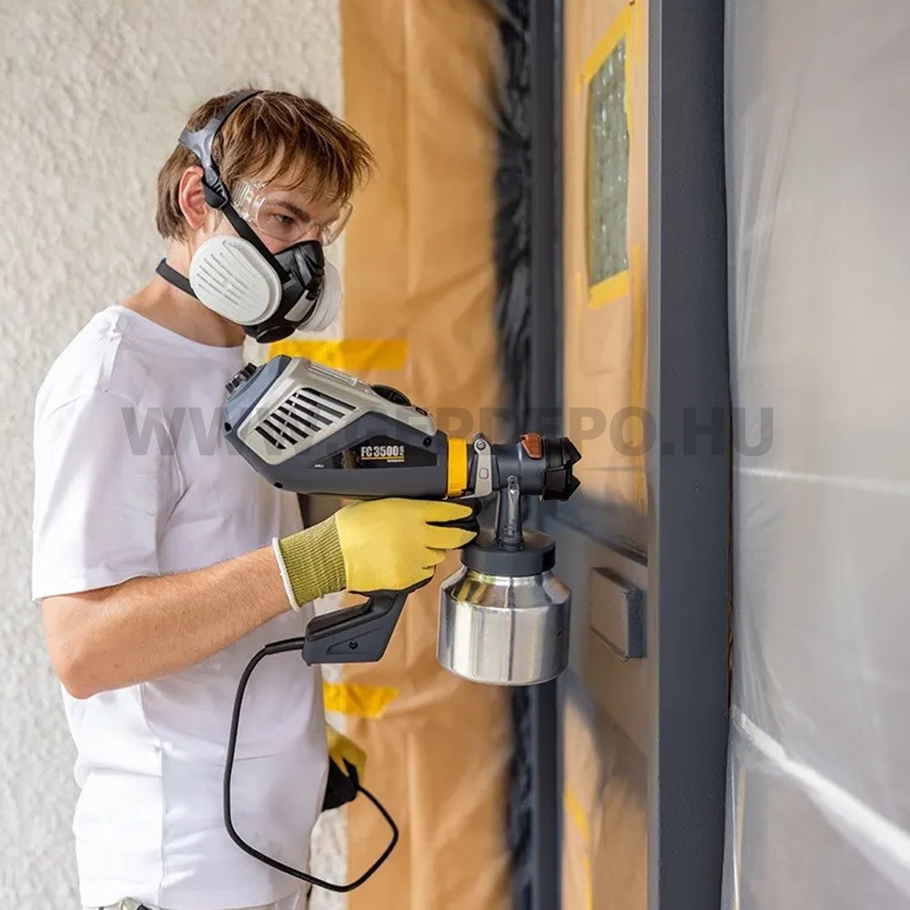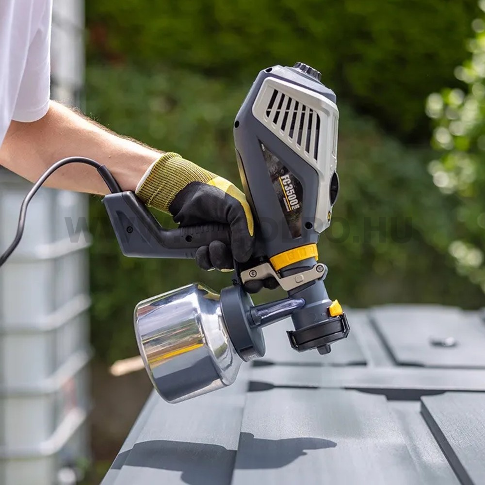 Wagner FinishControl 3500 Plus Festékszóró pisztolyPraktikus XVLP festékszóró kezdőknek és tapasztalt felhasználóknakEgyszerű kezelhetőségének és kompakt méretének köszönhetően a FinishControl 3500 Plus tökéletes választás mind a tapasztalt felhasználók, mind a kezdők számára.A festékszóró rendszer tökéletes partner festéshez, retusáláshoz és javítási munkákhoz, valamint kisebb projektekhez, például ajtópanelek és hangsúlyos falak bevonásához. A FinishControl 3500 Plus könnyű és könnyen kezelhető.A készülék XVLP technológiával (Extra Volume Low Pressure) működik , amely egy a HVLP technológián (High Volume Low Pressure) alapuló, de még nagyobb porlasztási teljesítménnyel rendelkező porlasztási technika. A szórásminta ezért különösen finom és egyenletes. A kis számú alkatrész gyors és egyszerű tisztítást tesz lehetővé.