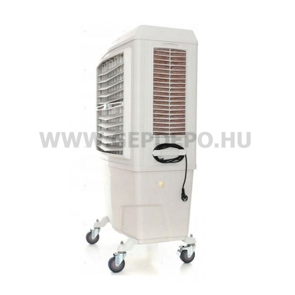Master BC80 hordozható párologtató léghűtőMilyen előnyei vannak a párologtató léghűtőknek?Működése: A Master léghűtők a víz egyszerű és természetes párolgási folyamatát használják ki a levegő hűtéséhez. A szivattyú által a tartályból szállított víz nedvesen tartja a nagy felületű cellulóz szűrőt, melyen át a nagy teljesítményű ventilátor levegőt szív be és továbbítja azt a hűtendő térbe.A víz elpárolgása a szűrő felületéről akár 5-10°C-kal csökkenti a levegő hőmérsékletét, melynek köszönhetően a helyiségbe hűvösebb, friss levegő kerül be és kiszorítja az elhasznált, meleg levegőt. A léghűtők az épületen kívül és belül is használhatóak, akár nyitott ablakok és ajtók mellett, folyamatosan friss, tiszta levegőt szállítva.Főbb jellemzők: