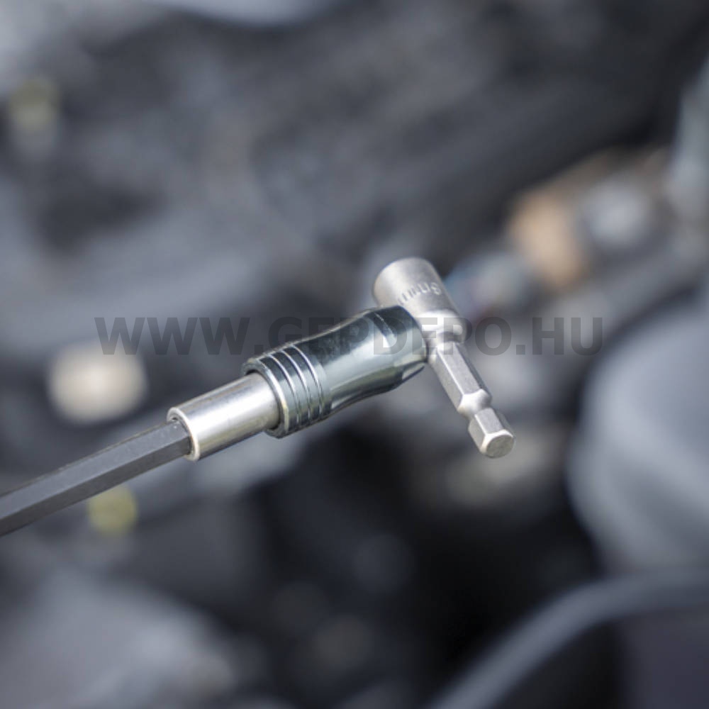Bittartó extra hosszú szárral Mélyen ülő csavarkötésekhez szűkös helyen végzett munkák esetén Az extra hosszú szárnak köszönhetően nehezen hozzáférhető csavarkötések is elérhetők Erős gyűrűmágnes, amely biztosan fogja a csavart Hatlapú ¼″-befogás a gyors szerszámcseréhez Extra hosszú szárával még a nehezen hozzáférhető szögekben is lehetővé teszi a csavarozást. A hatszögszárnak köszönhetően a bittartó szilárd fogást biztosít a fúrótokmányban, és egy mágnes gondoskodik a bitek biztonságos tartásáról. A bittartó egy további erős gyűrűs mágnessel rendelkezik. Ez biztosítja a csavar biztonságos tartását a nehéz testhelyzetben végzett munkák során is. Nem kell többé aggódnia a leeső csavarok miatt - ezzel a bittartóval mindent kézben tarthat.