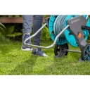 A GARDENA CleverRoll M tömlőskocsival a tömlő helytakarékosan tárolható, a kocsi pedig egyszerűen használható. A puha műanyag elemekkel ellátott ergonomikus karral megbízhatóan tekerhető fel a tömlő.