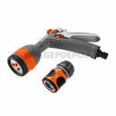 A GARDENA többcélú szórópisztoly áramlásszabályozással a legjobban felszerelt: a permetező négy különböző vízpermettel rendelkezik: kemény-, lapos-, lágy- és ködpermet. Széles választék a kert és otthon hatékony öntözéséhez és tisztításához. A vizet egy impulzusos trigger aktiválja. Ha a víz áramlásának folyamatosnak kell lennie, zárhatja az impulzus triggert. Ezáltal elkerülhető a kéz elfáradása. Vízmegállóval kiegészítve.