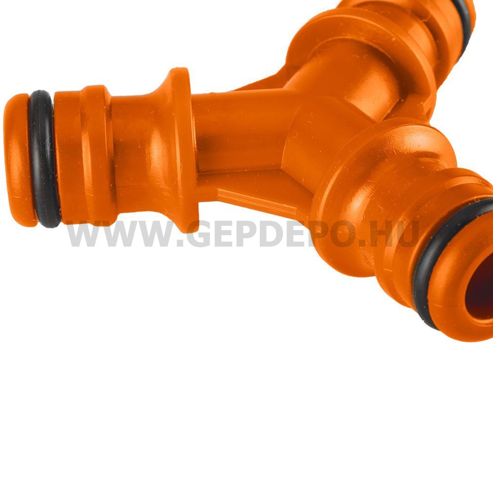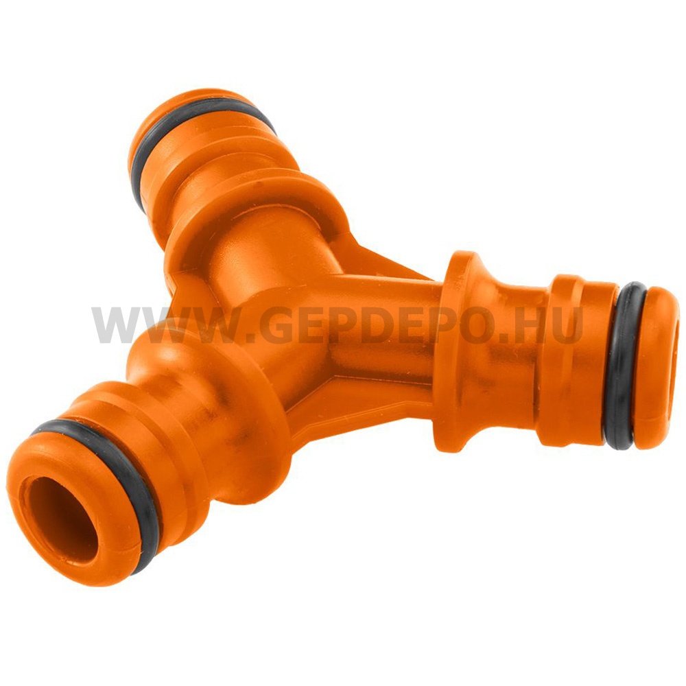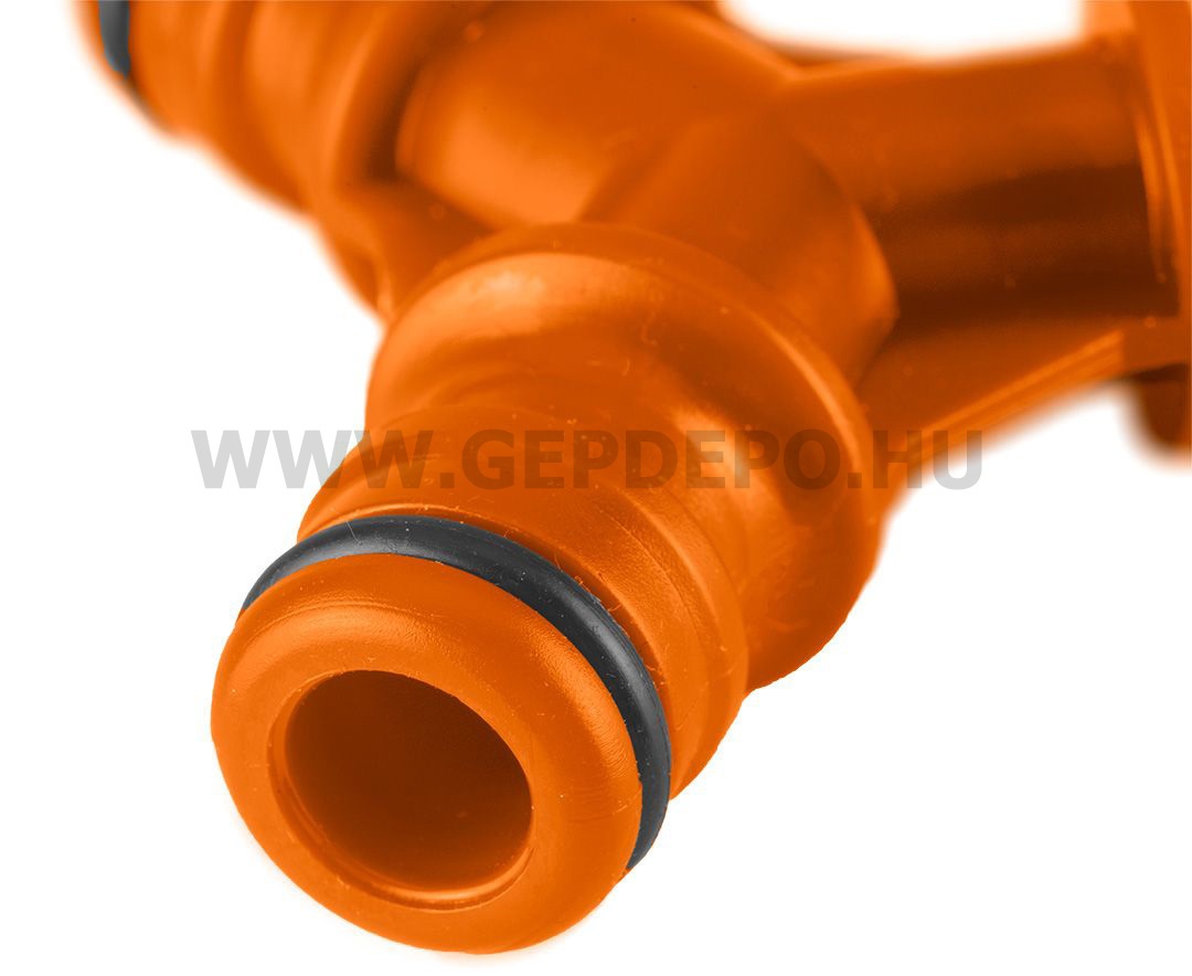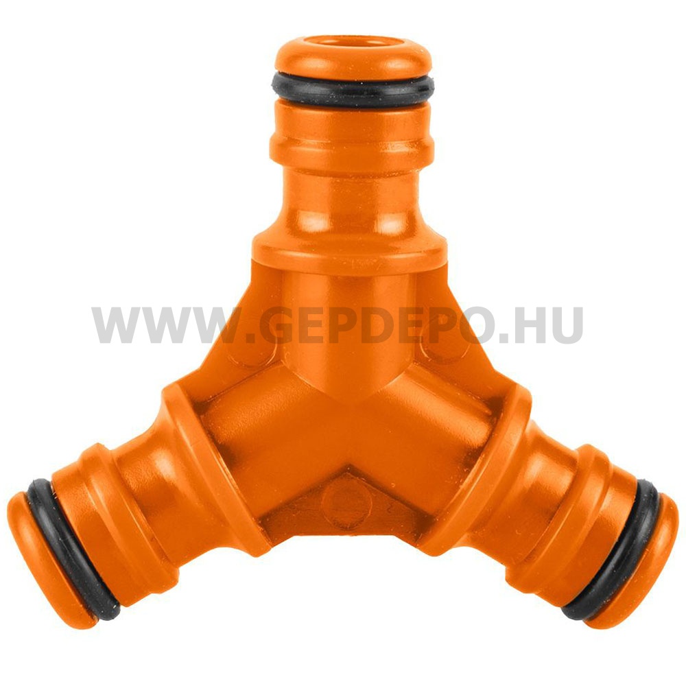 Kiváló műanyagból készült Y-elosztó ideális megoldás a locsolócső elosztásához.