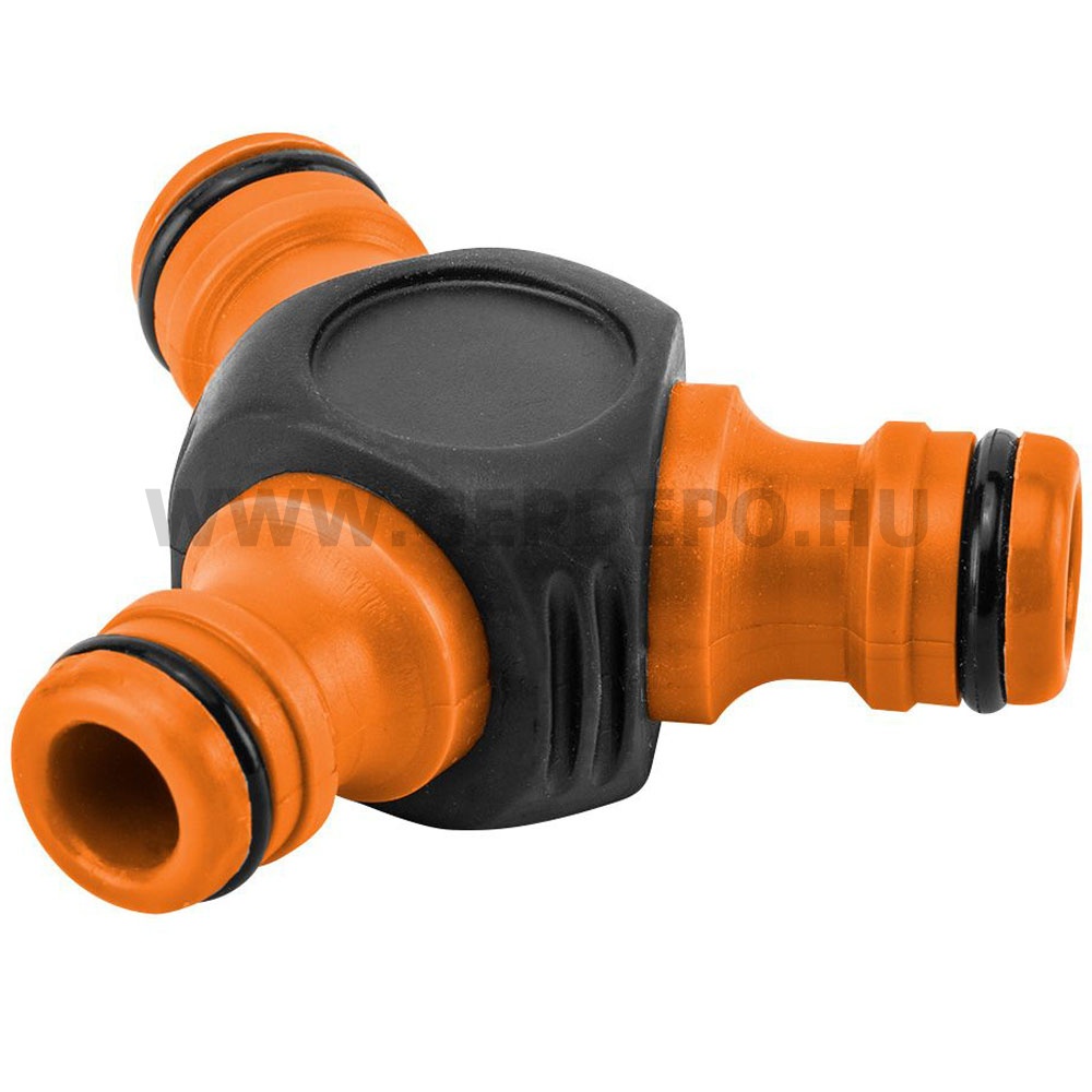 Kiváló műanyagból készült Y-elosztó ideális megoldás a locsolócső elosztásához.