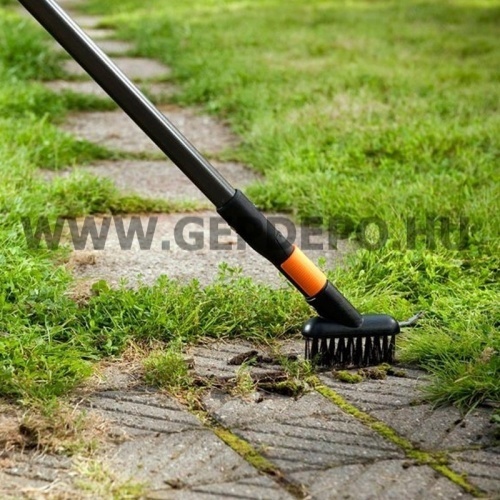 A Fiskars QuikFit™ útburkolat kefe sűrű acél sörtéivel könnyedén eltávolítható a burkolat lapok közötti moha és törmelék. A fix lemezpenge eltávolítja a makacsabb gyomokat is.