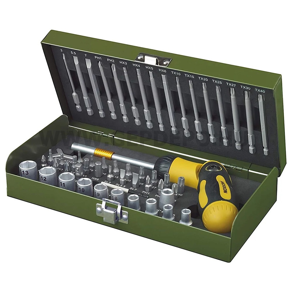 PROXXON Dugókulcs -és bitkészlet hajlítható csavarhúzó nyéllel 1/4", 54db-os (23104)