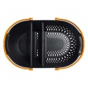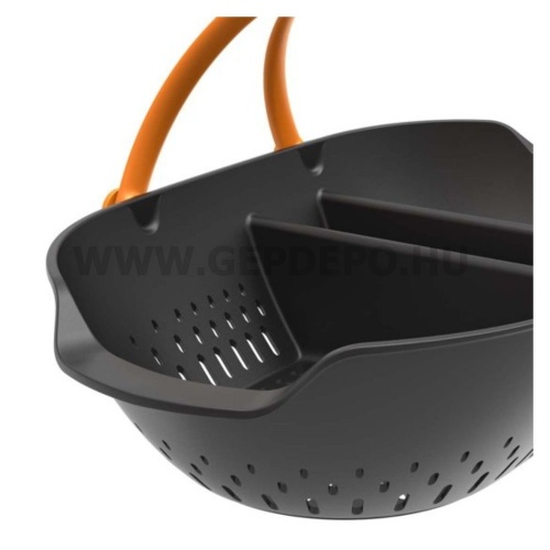 A Fiskars Plus kerti szüretelő kosár egyszerű, hatékony módot kínál a betakarított termények és szüretelő szerszámok összegyűjtésére, szállítására és tisztítására. A lyukacsos, illetve a zárt rész lehetővé teszi, hogy elkülönítse az élelmiszereket a szerszámoktól, vagy a mosott terményeket a mosatlanoktól. A frissen betakarított terményeket leöblítheti vagy kiáztathatja. Az ergonomikus oldalsó fogantyúk kényelmessé teszik a nagy termések két kézzel történő szállítását, míg a különálló, összecsukható fülek összezárhatóak egykezes használatra.
