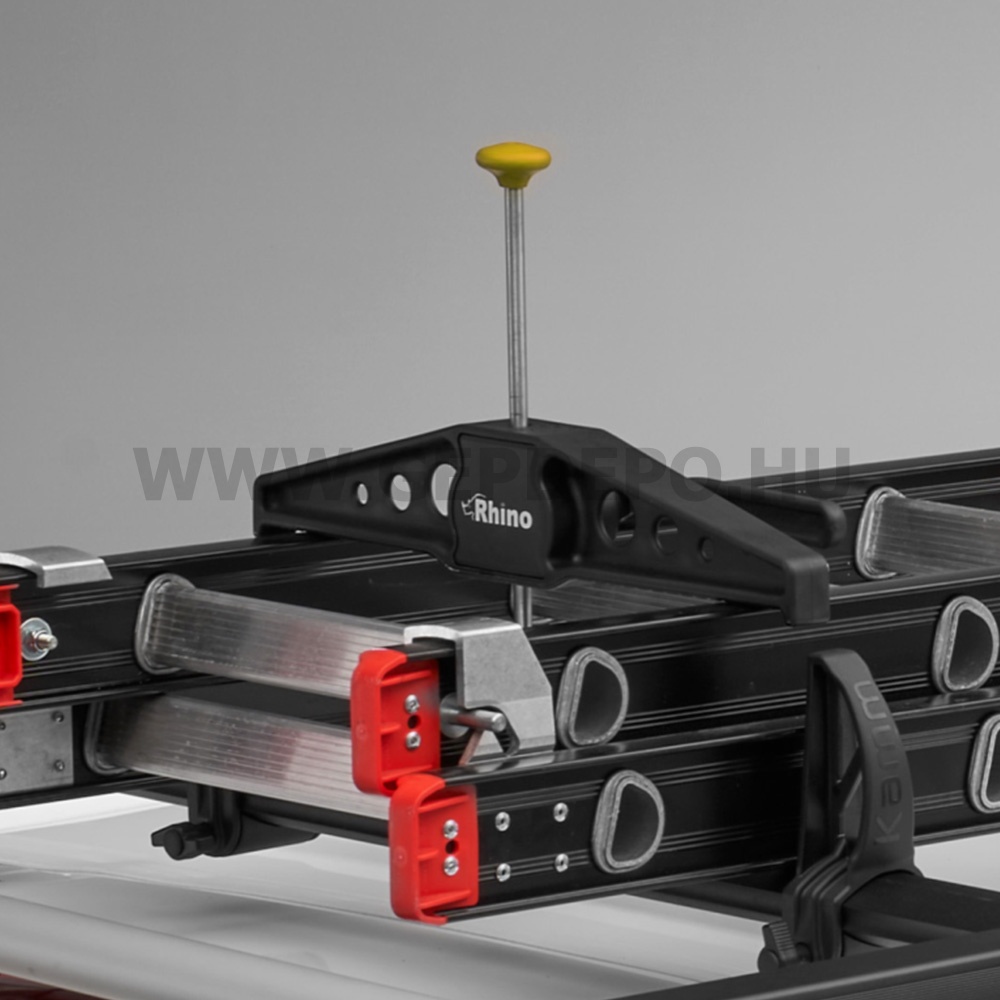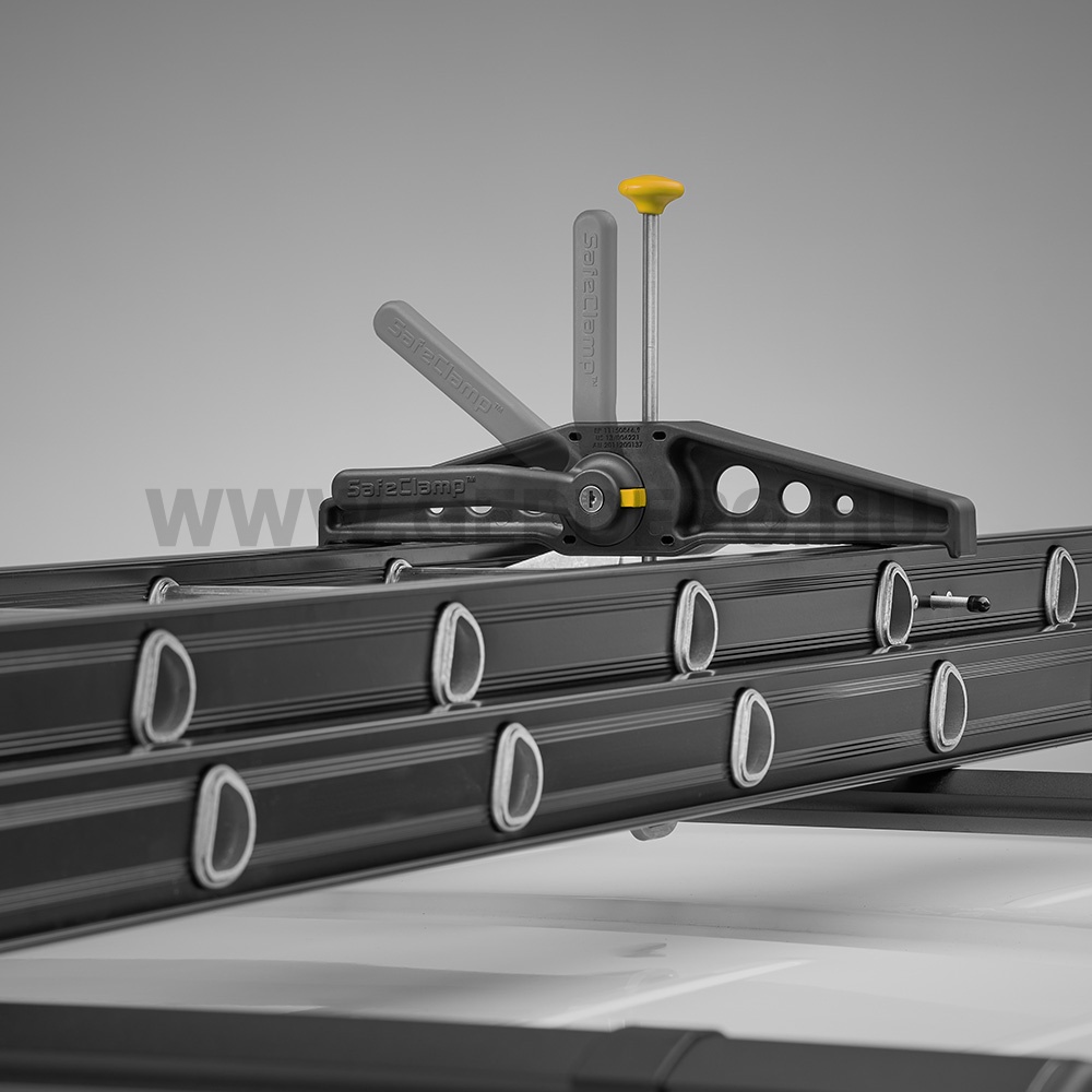 Rhinos RAS21 SafeClamp létrarögzítőTetőcsomagtartókhoz készült biztonsági létrarögzítő. Segítségével gyorsan és megbízhatóan a tetőcsomagtartóra erősítheted a létrát, kiváltva vele az olyan bonyolult megoldásokat, mint pl. a gumipók. Az innovatív OneTouch technológiának köszönhetően használata ötször gyorsabb, mint más rögzítőké. Ellenálló kompozit anyaga ellenállóvá és korrozióvédetté teszi.Egyszerre három létra rögzítésére alkalmas.