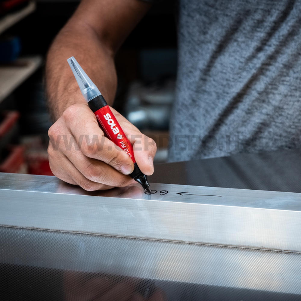 2 az 1-ben: Furatjelölő és alkoholos filc egy eszközben A vízálló és gyorsan száradó tinta megbízhatóan, elkenődés nélkül ír sima és száraz felületeken, például üvegen, fémen, kövön és műanyagon Egyszerű jelölés furatokban és nehezen hozzáférhető helyeken a vékony nemesacél csúcsnak köszönhetően Precíz jelölés, rajzolás és írás finom vonalszélességgel Fényálló és gyorsan száradó Nincs bosszantó elgurulás a jelölővel végzett munka közben a rögzítőkapocsnak köszönhetően