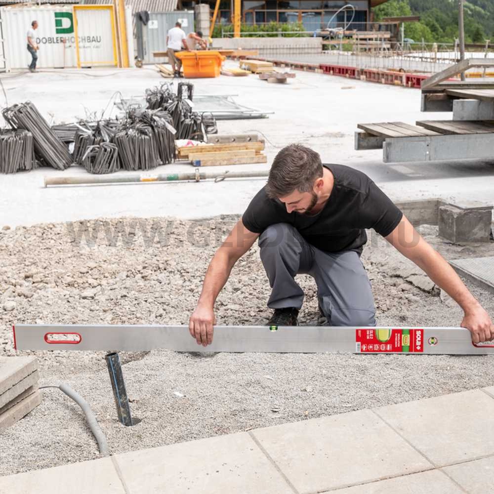 Vízszintes és függőleges libellák kiváló mérési pontossággal Rendkívül robusztus profil nagy szilárdságú alumíniumötvözetből a hosszabb élettartam érdekében Jobb, gyorsabb és pontosabb leolvashatóság a szabadalmaztatott SOLA-FOCUS libellával Törhetetlen akrilüveg, 30 év kifolyás elleni libellagarancia Ütéscsillapító végdugók Beépített fogantyú a komfortosabb munkavégzéshez