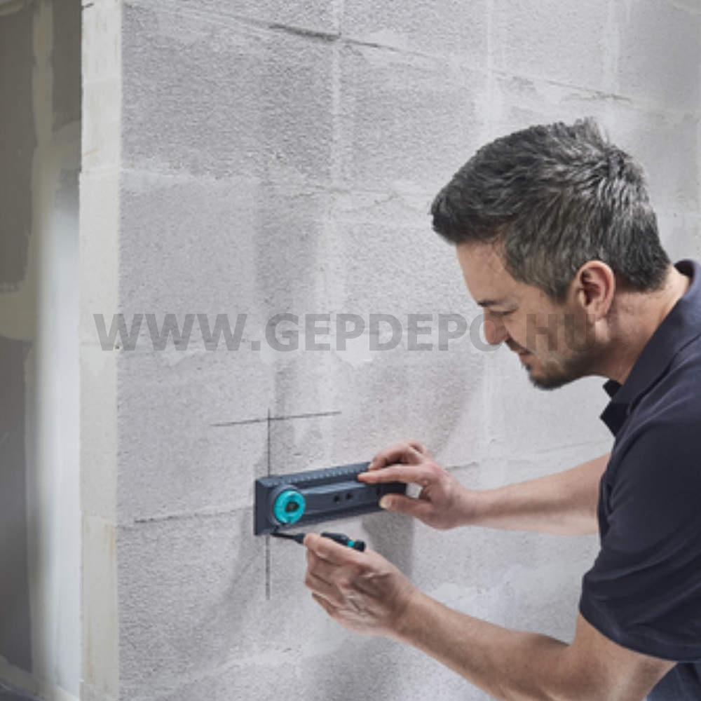 A 90°-ban elfordítható buborékos vízmértékkel megbízhatóan igazíthatja vízszintesen és függőlegesen a sablont, így pontosan megjelölheti a fúrási pozíciókat. A szerelődobozok és a betétek későbbi igazításában is támogatja Önt, így lehetővé teszi a pontos pozícionálást.