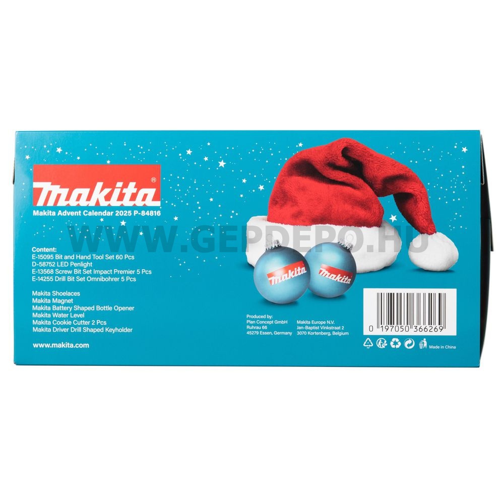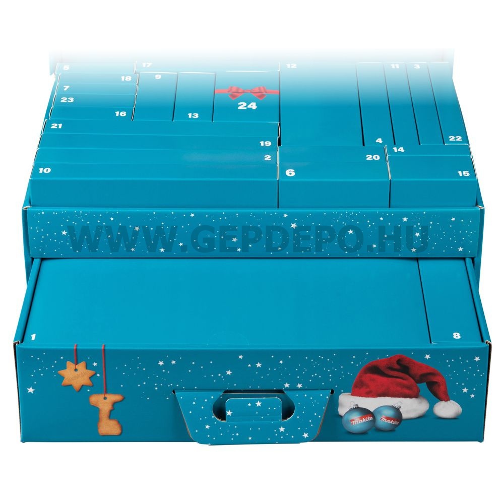 Makita Limitált kiadású Adventi Naptár 2025Legyél akár tapasztalt profi, akár lelkes barkácsoló, a Makita adventi naptár minden napra tartogat egy új meglepetést. A praktikus kiegészítőktől a játékos Makita-termékekig mindent megtalálsz benne, így tökéletes választás minden szerszámkedvelő számára. Ez a különleges naptár gondosan összeállított válogatást rejt, olyan eszközökkel és apróságokkal, amelyeket valóban hasznosnak fogsz találni – igazi értéket adva a szerszámkészletedhez.Szett tartalma:5 x HSS-Tin Fémfúró 3-8mm5 x Fafúró 3-8mm2 x ¼” Hex Lapos fafúró 16-22mm5 x Kőzetfúró 3-8mm1 x süllyesztő fúró24 x csavarbehajtó bit 25 mm1 x 60 mm-es mágneses bittartó4 x ¼”-es dugókulcs 6-13 mm1 x dugókulcs adapter ¼” Hex 1x ¼”-es racsnis hajtókar1 x 3 m-es mérőszalag1 x törhető pengés kés1 x csavarhúzó T-nyelű8 x imbuszkulcs 1,5-6 mm1 x Impact Premier 5 részes bit készlet5 X darabos MULTI fúrófej készlet1 x LED-es toll elemlámpa1 x Makita sütikiszúró – 2 darab1 x Makita akkus fúró-csavarozó kulcstartó1 x Makita hűtőmágnes1 x Makita cipőfűző1 x Makita mágneses zseb vízmérték1 x Makita XGT akku formájú üvegnyitóIdeális ajándék és meglepetés minden Makita márka kedvelőnek! A Kalendárium kibontása után a teljes tartalom egy kofferben rendszerezhető!
