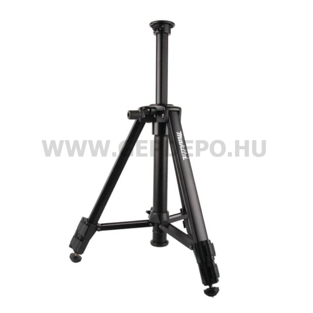 Makita tripod állvány lézertechnikai és mérőműszerekhezKiterpesztésgátlóval és középteleszkóppalA lábak 3 tagból állnak és bajonett zárral szoríthatóSzintbeállító felület libellaLábak végén egyenként szintezhető gumibakok találhatók, alatta acéltüske a természetes talajon történő használathozKözépteleszkópja, lehajtható kurblival állítható