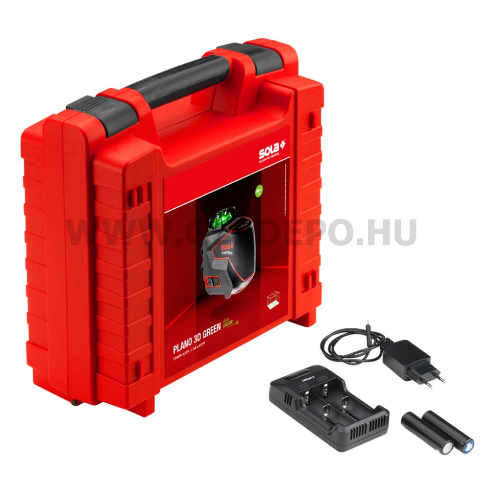 Önbeálló szintezés Mérési tűrés: +-30 mm/m Önszintező tartomány: +-3° Hatósugár szabadszemmel: 30m Hatósugár vevőegységgel: 80m 5/4” + ¼” állványmenet Lézerosztály: 2, DIN EN 60825-1 : 2014 Tápellátás: 2x3,6V 3450mAh (18650) akku cella