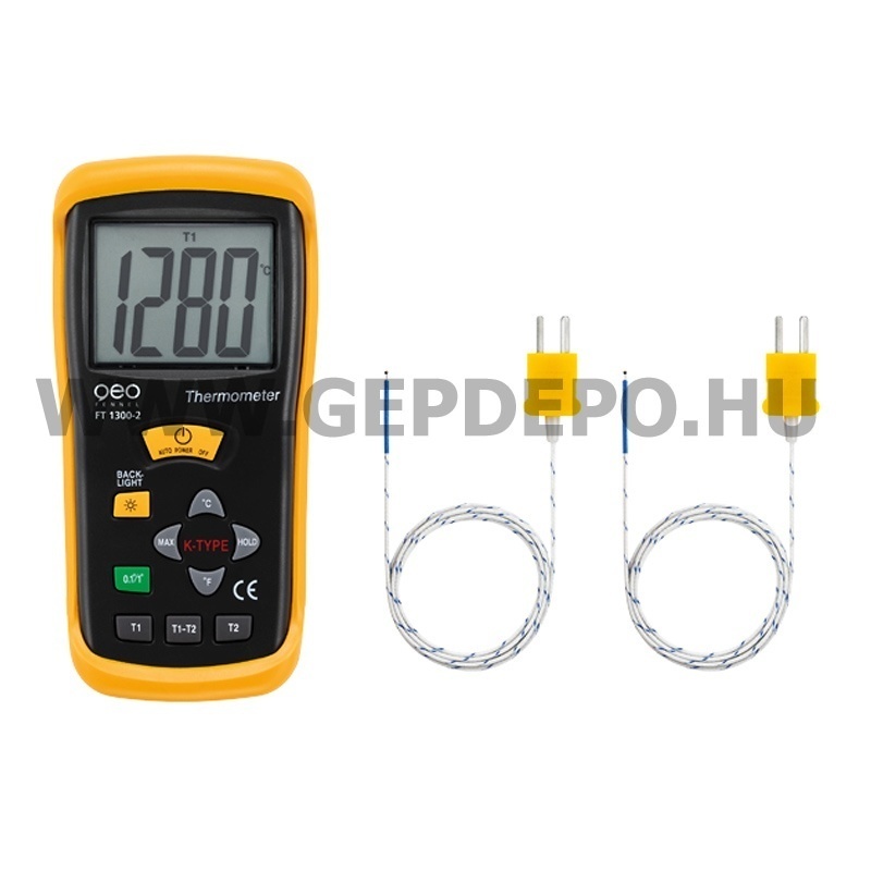 Kis méretű, kompakt műszer a legkülönfélébb anyagok hőmérsékletének meghatározásához, -50 °C-tól 1300 °C-ig. Dupla mérőszondás változat. K-Type szondacsatlakozás.