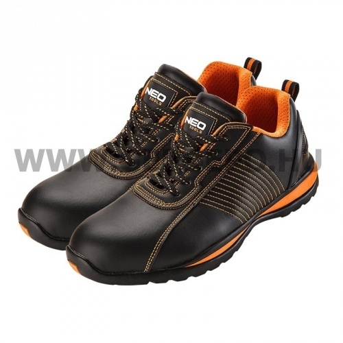 A NEO munkavédelmi félcipő alapvető védőeszköz a munkavégzéshez. Felsőrésze könnyen ápolható bőrből készül. Csúszásmentesített talpa gumival borított EVA hab, ami kiváló kényelmet és hatékony rezgéscsillapítással járul hozzá a biztonsághoz és a viselési komforthoz. A műanyaggal megerősített sarok és az acél orrmerevítő véd a sérülések ellen. A lábbeli belső részének puha kikészítésének köszönhetően magas fokú a munkavégzés kényelme.