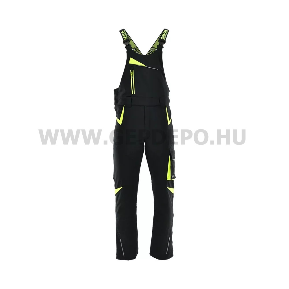 Bélelt SOFTSHELL kertrésznadrág. Innovatív modell, amely ötvözi a funkcionalitást, a hideg elleni védelmet és a divatos megjelenést. Külső anyag: 320 g/m2, bélés: 340 g/m2 · rugalmas, állítható nadrágtartó · fényvisszaverő elemek · tágas cipzáras mellzseb · szélálló softshell szövet · zollstock számára kialakított zseb · tépőzárral zárható combzseb · zsebfedős farzseb a jobb oldalon · állítható gumírozott derékrész