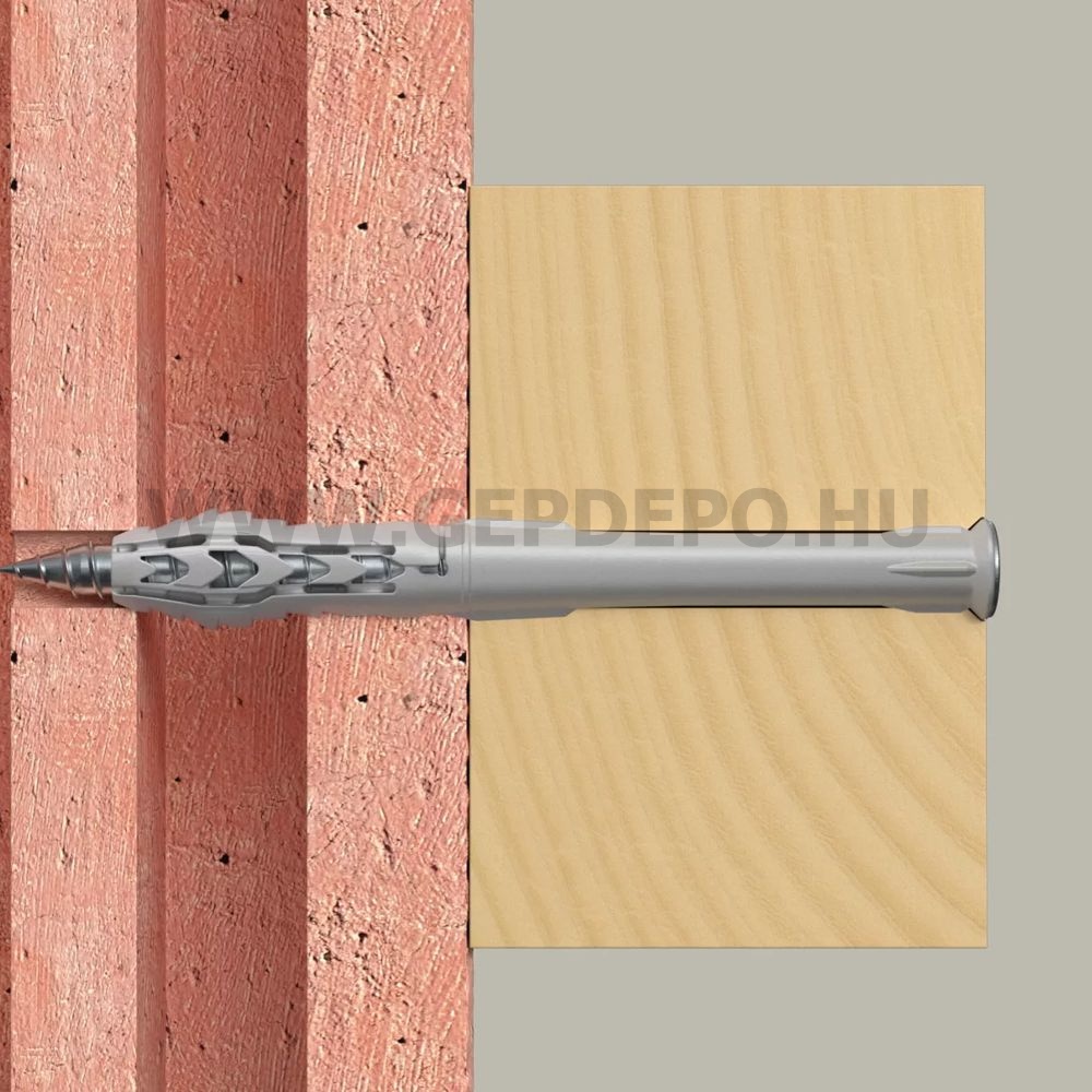 Egyéb hasznos információk:ETA engedély Fúróátmérő (d0) 10 mmMin. furatmélység átmenőszerelésnél (h2) 90 mmHasznos hossz 50mm-es rögzítési mélységnél (tfix) 50 mmBehajtás TX40Dübel hossz (l) 80 mmCsomagolás PapírdobozMennyiség 50 dbGTIN (EAN-Code) 4006209462720
