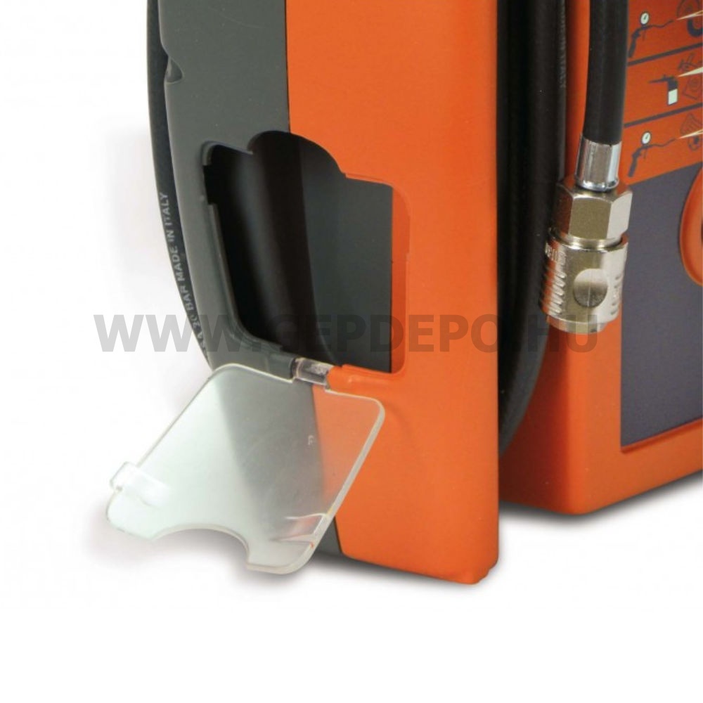 · 3 m hosszú tömlő gyorscsatlakozóval · 3 részes fúvóka adapter készlet · tömlőfúvató manométerrel