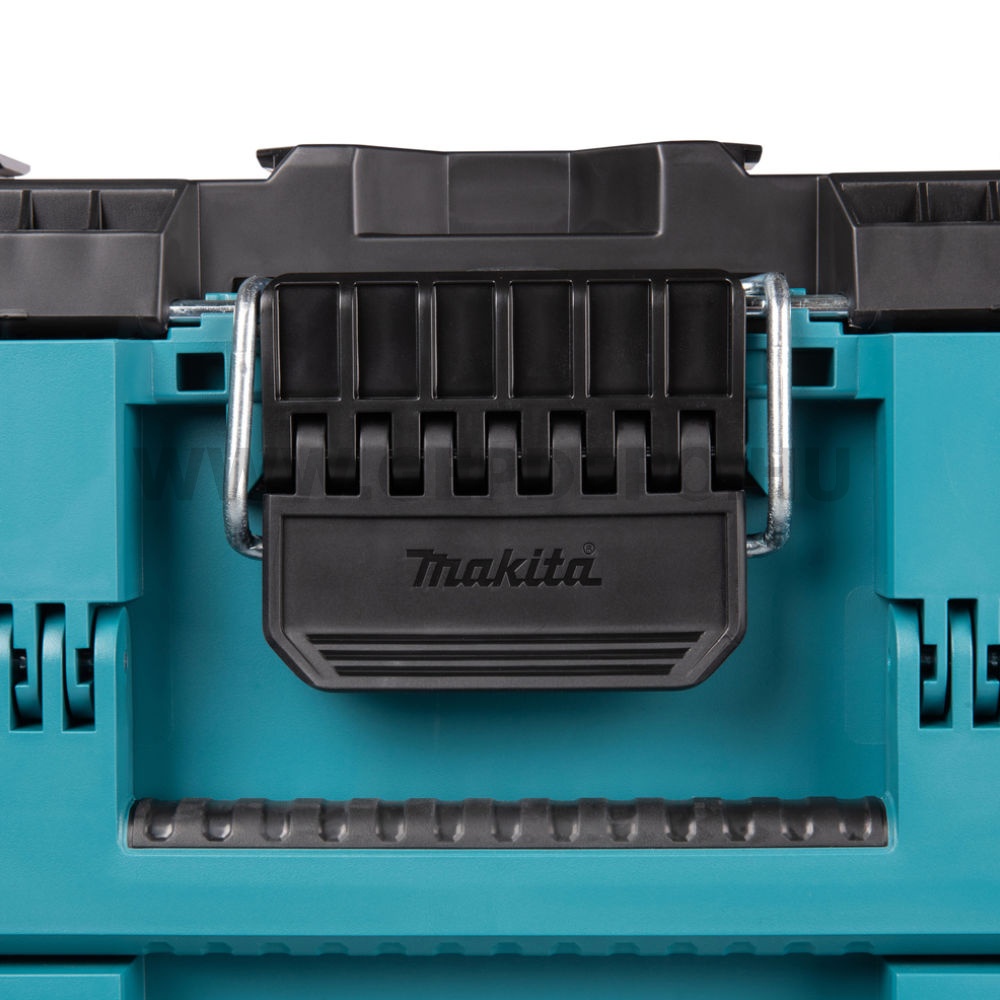 Makita MAKTRAK™ nagyméretű tároló egy moduláris tárolási megoldás a munkaterületen használt felszerelések szállításához, hozzáféréséhez, tárolásához és rendszerezéséhez, vízszintes kialakításával maximális hozzáférhetőséget biztosít és hosszú szerszámok tárolására is alkalmas.