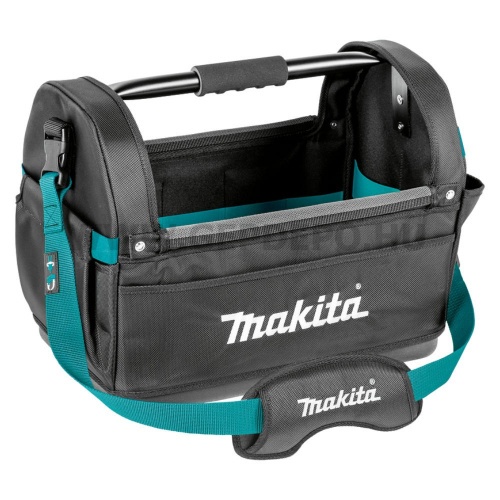 Makita nyitott merevfalú szerszámostáska - nyitott táska, szerszámosdoboz fogantyúval és hevederrel különböző szerszámok, kiegészítők szállítására és tárolására szolgál.