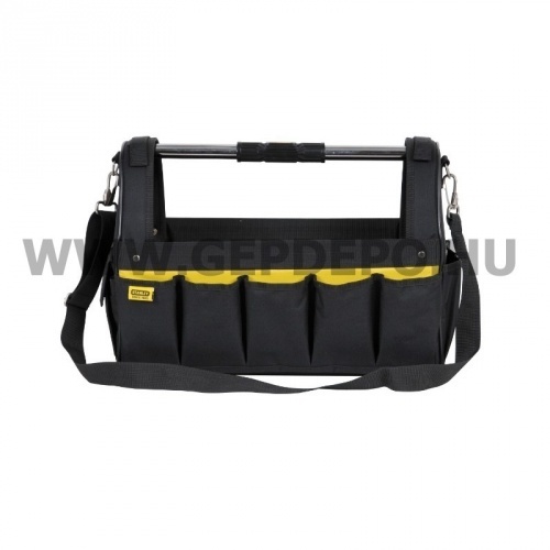 • Nyitott kialakítás• Jó átláthatóság• Strapabíró és erős dernier szövet (600x600)• Kényelmesen hordható• Állítható vállpánt• Külső és belső zsebek• Fedett első zsebek a kisebb, személyes holmik biztonságos tárolására• Erős fém kar kényelmes fogással • Oldalsó gumis pántok vízmérték rögzítéséhez